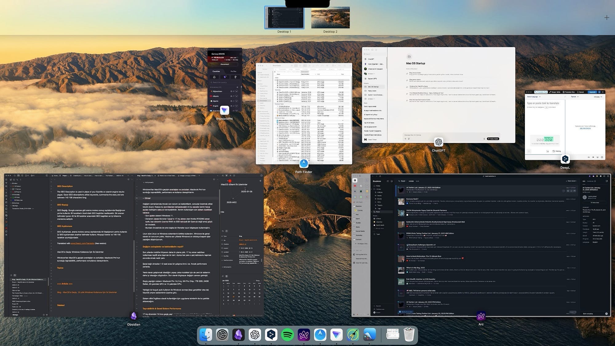 Geçiş yaptığım sistem: Macbook Pro 14,2 inç, M4 Pro Chip, 1TB SSD, 24GB Bellek, 20 çekirdek GPU ve 14 çekirdek CPU.